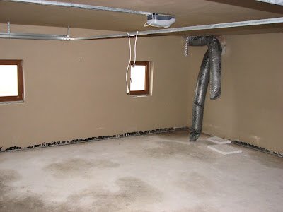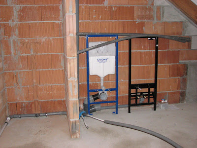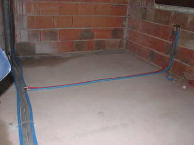 Następnie mamy pomieszczenie gospodarcze - wydzielone z garazu. Te rury to przepusty na dolne źródło pompy ciepła i kanalizacja do rekuperatora.