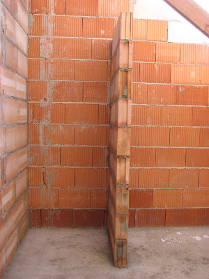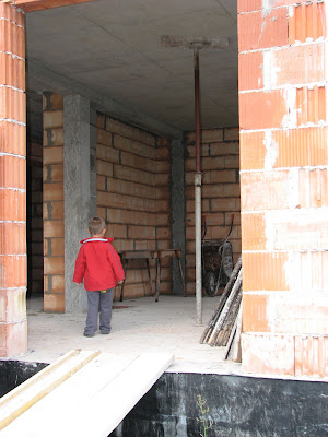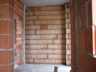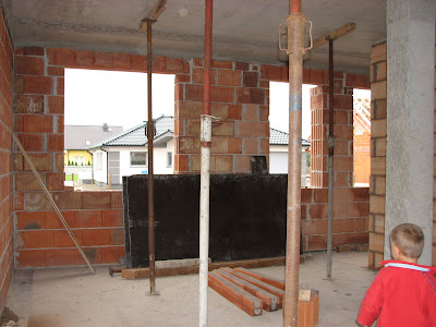 Spiżania - zapomnieliśmy wszyscy o ściance, do której przymocujemy drzwi - pomocnicy nie narysowali, ja nie zauważyłam, a murarze wymurowali tylko to, co było narysowane Spiżania będzie miala okno - to najdalsze