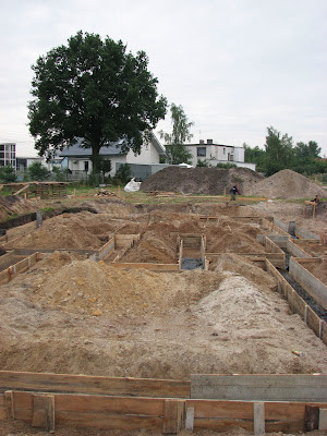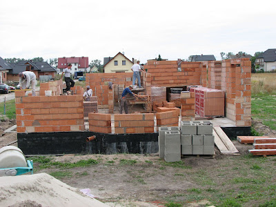 W tym tygodniu mają wreszcie ocieplić fundament i przygotować fundament pod taras. Zrobimy tylko obrys + piach w środku - skłaniamy się ku tarasowi wyłożonemu kostką betonową lub brukiem klinkierowym. Płytek trochę się boimy na tak dużej powierzchni - zbyt latwo jest coś zepsuć w ułożeniu i potem wieczne kłopoty