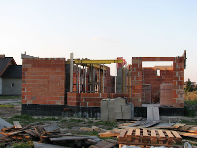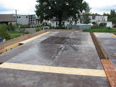 Jutro dalej walczą ze stropem - będzie sporo zabawy ze schodami, podciągami. Dziś z kierbudem ustaliliśmy, że wszystkie elementy betonowe - wieniec, słupki wykusza, wzmocnienia ścianki kolankowej (zapomniałam jak się to fachowo nazywa ) będą dodatkowo ocieplone 3 cm styroduru. Mam nadzieję, że to zapobiegnie mostkom termicznym, bo sporo tego betonu będzie.