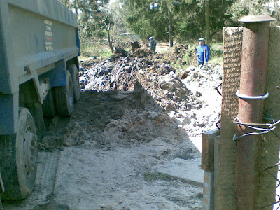 Murarze drugi dzień walczą z chudziakiem. W pierwszym kroku zrobili groble przez pozostałości po stawiku: