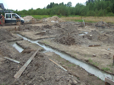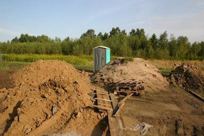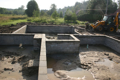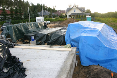 Na początku października spotkaliśmy się z Panem Krzyśkiem, który swego czasu robił nam meble w mieszkaniu. Zaplanowaliśmy sobie, że święta spędzimy już w domku a do tego potrzebne były meble w kuchni, tak bynajmniej twierdziła moja Ania. Pan Krzysiek przyjechał, pomierzył, dogadaliśmy się co i jak i za ile, wziął zaliczkę i kazał czekać. Udało mi się też uporządkować teren z od strony garażu, musiałem jeszcze dokupić tam trochę ziemi i nawieźć. Nawiozłem też ziemię z tyłu działki. Ja z takich większych rzeczy to położyłem rury doprowadzające wodę deszczową z tyłu domu, zrobiłem studzienkę gdzie podłączyłem dodatkową rurę do wyprowadzenia wody do ogrodu i spuszczania wody z instalacji na zimę.