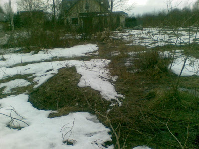 W piątek przyszło info z banku, że potrzebują dodatkowo wypisu/wyrysu z ewidencji gruntów oraz ksero pierwszej strony z dziennika budowy z wpisami. Trochę zaczyna mnie to irytować, bo chcę kredyt żeby rozpocząć budowę a oni chcą aby ja rozpoczął budowę żeby dali mi kredyt. Nie mniej przyjąłem strategię, że nie dyskutuję. Papiery w gminie już złożyłem (120zł), niestety czas oczekiwania to 3 tygodnie. Dziennik też już jest kupiony i opieczętowany w gminie. Teraz tylko trzeba kierownika znaleźć. Poza tym przy okazji złożyłem wniosek o wydanie warunków technicznych przyłącza wodociągowego (274zł). Z innych rzeczy dostałem wycenę za fundament od wykonawcy domu ale ceną mnie trochę powaliła 55tyś, więc szukam kogoś innego. Byłem też na działce, jest lekko zalana wodą, ktoś w międzyczasie wyciął nam kilka drzewek. Działka jest położona wyraźnie poniżej poziomu drogi, trzeba będzie więc niestety nawieźć trochę ziemi. Na razie szukam też ekipy do wykarczowania zielska, krzaków i drzewek oraz do wykonania ogrodzenia od tyłu i boku. Poniżej kilka fotek z placu bitwy.