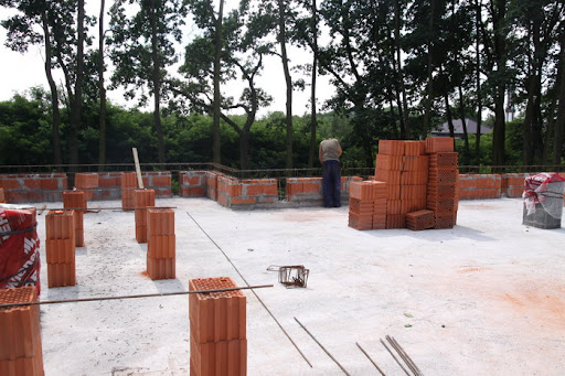 Muszę przyznać, że choć budujemy z Porothermu, to sporo zużyliśmy pełnej cegły. Dlaczego? Odpowiedź m.in. na tym zdjęciu (2009.06.21):