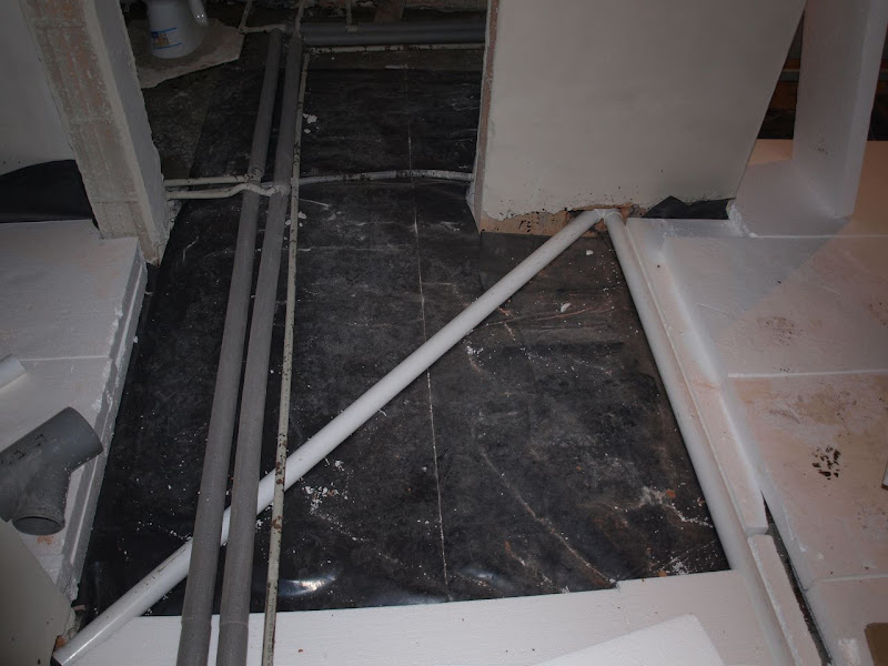 - izolacja pozioma na podłogach (dysperbit, papa termozgrzewalna, folia, styropian, folia, wylewki, na poddaszu to samo z pominięciem dysperbitu i papy)