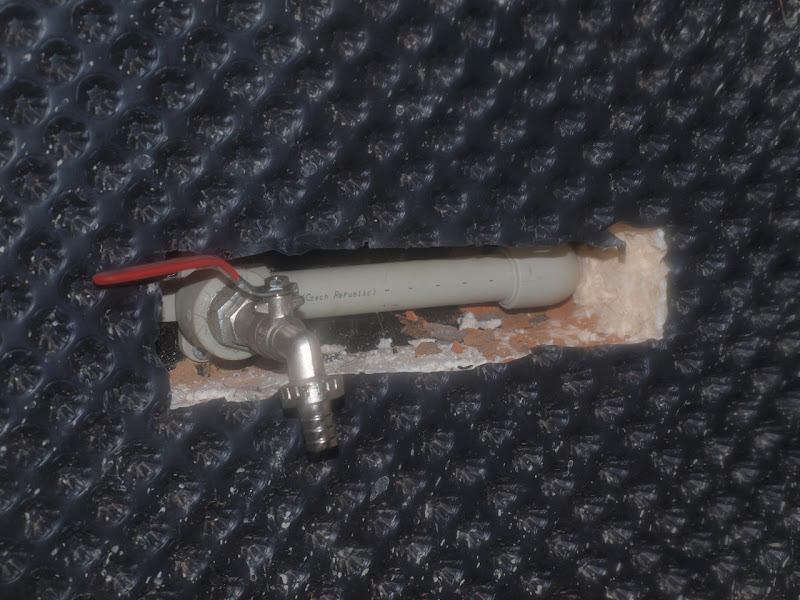 - instalacja wody "czerpalnej" (groźnie brzmi, ale chodzi po prostu o rurę między hydroforem a przyłączem wodociągowym i jej pociągnięcie dalej do kranu czerpalnego na elewacji)