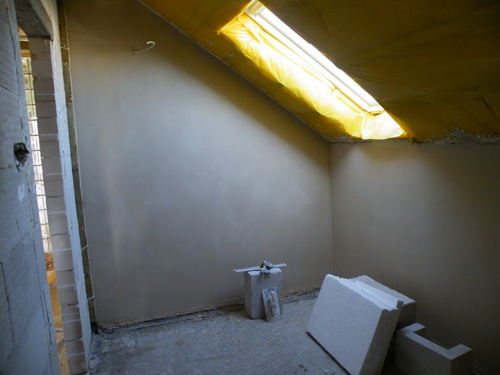- znienawidzone puszki od rolet też przykrywamy rigipsami i tynkujemy tylko do poziomu rigipsów, zobaczymy co z tego wyjdzie, mam nadzieje ze konstrukcja nie będzie pękała