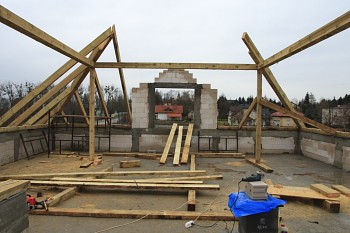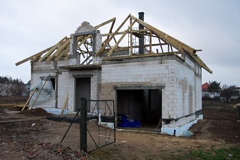 Czekamy na więźbę... już drugi tydzień. Ale dziś dostałam zapewnienie, że w przyszłym tygodniu na pewno będzie . I wszystko byłoby super, gdyby nie fakt, że Kierownik Budowy zapowiedział Majstrom, że nie pozwoli tej więźby wciągnąć na górę, jak nie zrobią tarasu . Zapyta ktoś pewnie, co ma piernik do wiatraka ? Ano ma. Pisałam już, że u nas na tarasie jest słup, który podtrzymuje prawie połowę stropu (z tą połową, to przesadziłam, ale spore ma obciążenie). Słup dość cienki jest i długi, a wylana na tarasie płyta ma go skrócić (i tym samym wzmocnić).