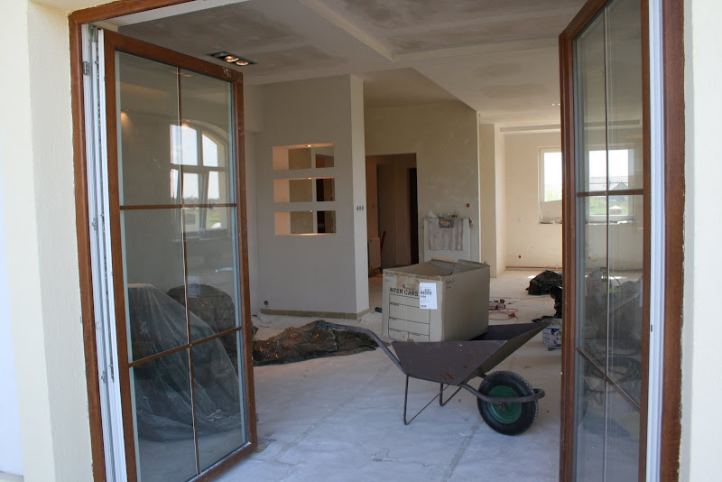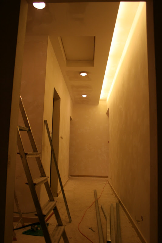 Ok skoro schorowany to zdecydowaliśmy się na ekipę, która jak weszła do domu to aż wrzało. Zakasali ręce i od razu wzięli się do roboty. Stwierdzili, że nie maja czasu i biora się do roboty. My nie mogliśmy zdąrzyć za nimi z pomysłami, co gdzie chcemy zrobić. O dziwo glazurnik nr 1 wyzdrowiał i zakasał rękawy. Robota paliła mu się w rękach a właściwie pękała, trzn płytki pękały, a my ciągle dokupywaliśmy nowe......ale ok , chce robić, niech robi. Ekipa poszła - zrobiła wszystkie karton gipsy z oświetleniem w każdym pomieszczeniu, tarakotę w salonie, holu, wiatrołapie w łazience sufit podwieszany, półki i ścianę od prysznica. A glazurnik nr 1 jest nadal podobno ma czas do 18 maja. Jest tak powolny, że mi się flaki już w bebechach przewracają na jego widok.
