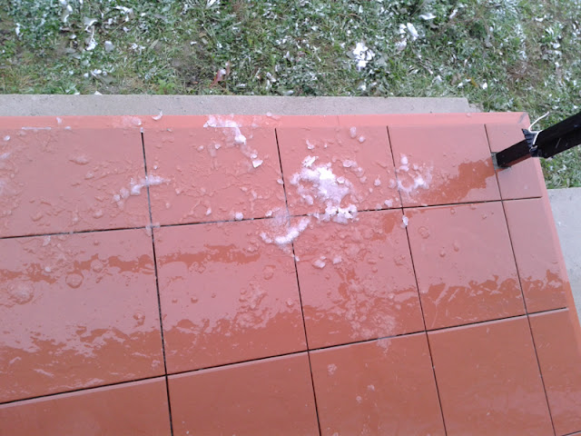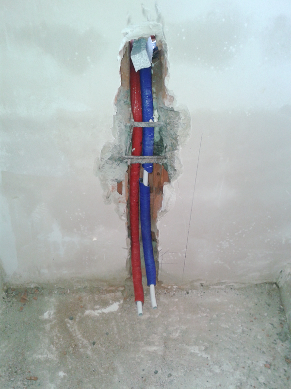 Po kilku dniach kolejne próby ciśnieniowe, ale już na wydzielonych obwodach instalacji wodnej - ogrodowej i osobno domu. Teraz wyraźnie wskazały, że w domowej sieci następuje spadek przy zachowanym ciśnieniu w instalacji ogrodowej. Już bez zbędnej zwłoki zdecydowałem się na kolejne odkrywki. Wziąłem dzień urlopu i panowie instalatorzy tym razem szybko i bez dodatkowych szkód odsłonili dwa newralgiczne miejsca w hallu (w miejscu muf i kolanek na instalacji wodnej). Drugie z tych miejsc pokazało kapiące kolanko. Tak mniej więcej 3 krople na minutę. Szybko wycięli ten fragment i wkleili nowy. Przez tydzień czasu na podłożoną pod rurkę gazetę nie spadła ani kropla wody. Chyba kluczowy winowajca został zlokalizowany. Teraz trzeba suszyć.