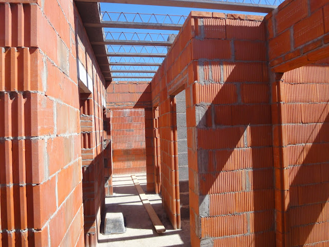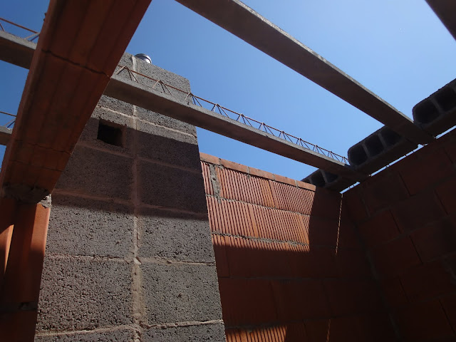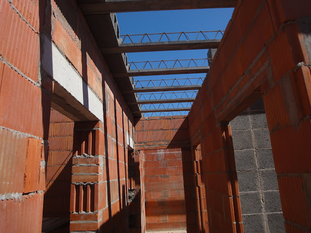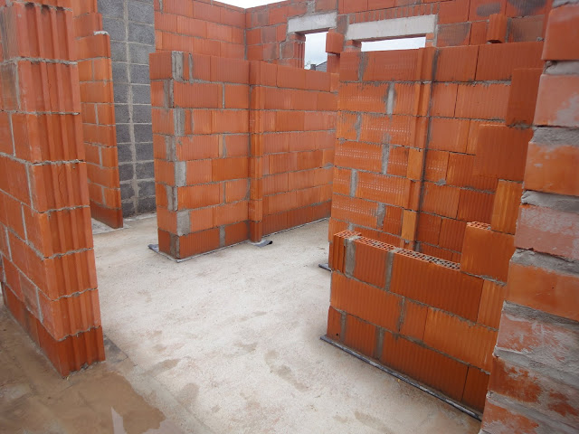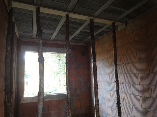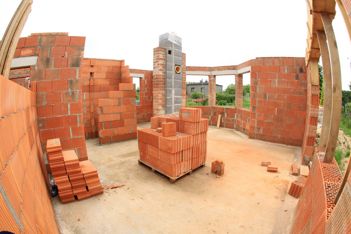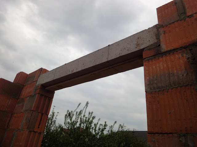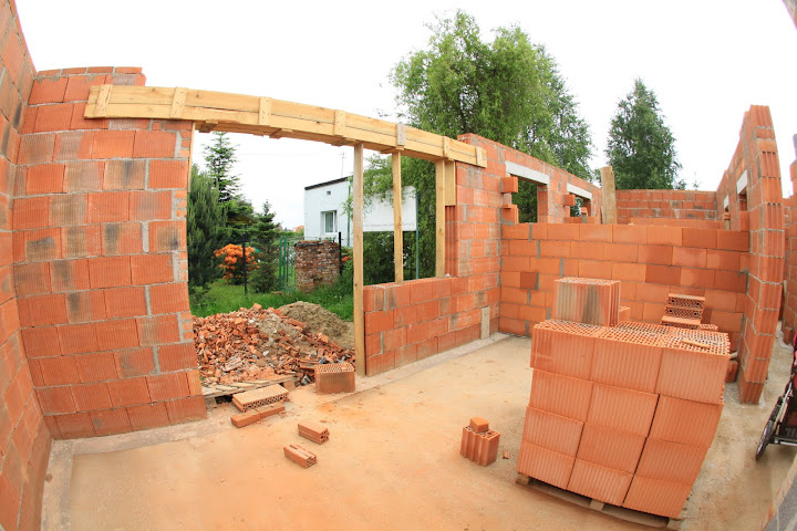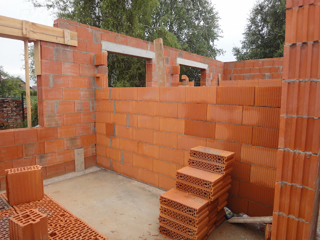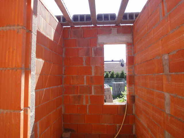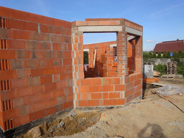 Wykusz zaczął przypominać wykusz - są już nad nim nadproża - został już wymurowany do wysokości stropu.