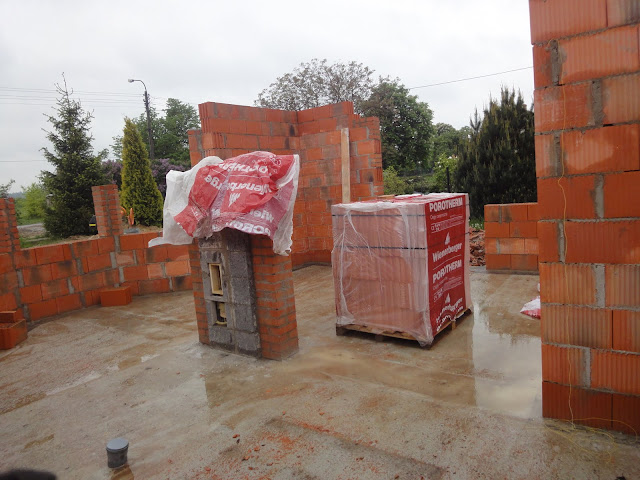 Kominy trochę urosły - nie jest to jeszcze ich pełna wysokość. Na razie wystają trochę ponad strop.