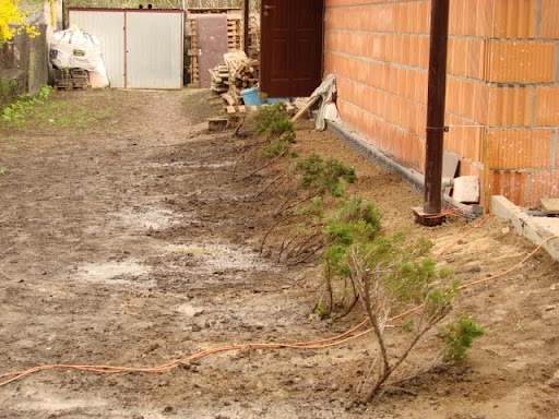 I takie, przed drewutnią i blaszanym garażem, żeby zasłonić...