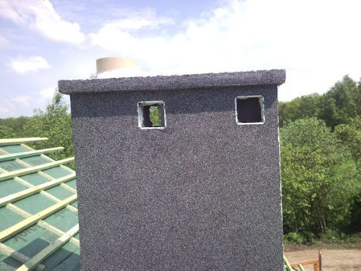 I nastała długo oczekiwana premiera maja - SŁOŃCE!!! Majstry ochoczo zabrali się do tynkowania pchełkowych kominów. Praca paliła im się w rękach. Oto efekty kilkugodzinnych zmagań z zywicą i kamykami