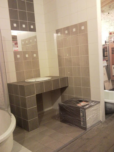 Wypatrzyliśmy płytki do łazienki dolnej. Podobnież pokazywane mi były na zdjęciach ale aprobaty nie uzyskawszy w cień poszły.