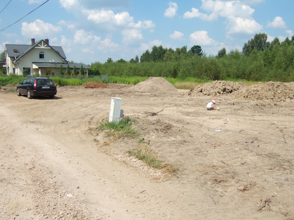 Pogoda w czerwcu w końcu się poprawił na tyle, że można było ruszyć z porządkowaniem. Prace wystartowały akurat w czasie, kiedy byłem w Karwi na wakacjach, wykorzystując swoja tacikowe za Zośkę. Po powrocie działka wyglądała zupełnie inaczej, wszystkie krzaczory i samosiejki zniknęły, polowa część działki została podniesiona. Do końca lipca nawieziono ok. 40 wywrotek ziemi, powyrywano wszystkie korzenie, działka zaczęła przypominać działkę.