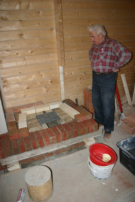 Pierwsze przymiarki na sucho do komory paleniskowej. Komorę paleniskową buduje się pod kątami, aby maksymalnie wykorzystać ciepło poprzez odbicie od ścian.