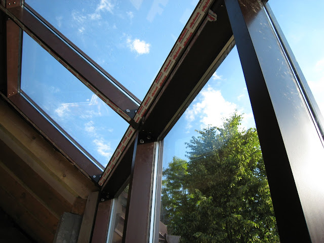 fasadka od środka - trudno było dobrać kolor na aluminium do koloru PCV..