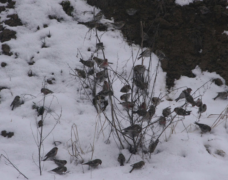Zima nie puszcza. Dziś za oknem znowu biało. Przyleciało do nas stado ptaszków obdziobywać jakieś wyschłe chwasty. Tak ze 80-100 sztuk. Piękny widok. To zdaje się makolągwy. Fakt działka wymaga uporządkowania ale póki co maja jak się pożywić. A pozniej tez planuje powsadzać krzewy i drzewka które lubią obdziobywać ptaki.