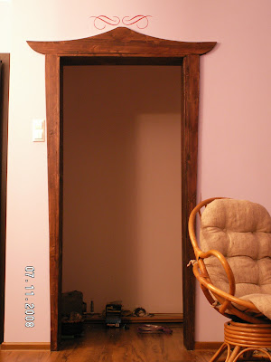 Żadna z naszych trzech garderób nie ma zwykłych drzwi wejściowych. Po prostu nie chciałam takich mieć. W naszej sypialni powstaje wejście do garderoby. Narazie jest futryna, potem będą drzwi suwane, których wygląd już wymyśliłam. Muszę je narysować, podobnie jak zabudowę garderoby, którą wymyślam i oddać szkice do wykonawcy - czyli mężusia