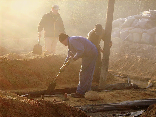 Ze względu na zagrożenie obsypywania się piasku trochę na koniec żałowaliśmy, że nie wybraliśmy głębszego dołu pod budowę i nie zalewaliśmy ław w pełnych szalunkach. Jednak efekt końcowy okazał się mimo obaw całkiem niezły.