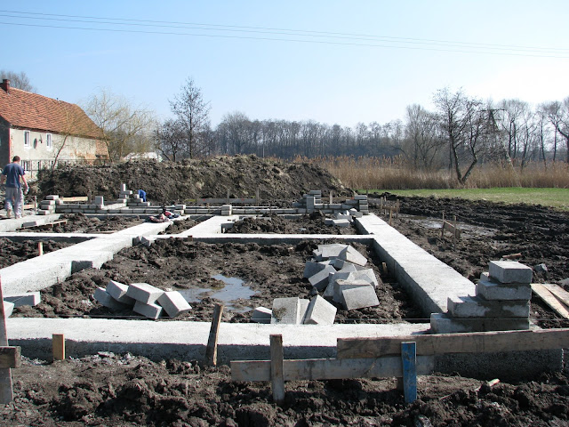 Jutro mają być dowiezione potrzebne bloczki fundamentowe . Zrobimy na nich jeszcze klamre zazbrojoną i potem czeka nas zasypywanie środka.