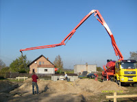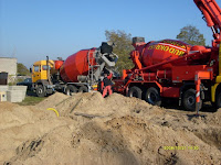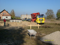 W czasie tych przygotowań, ok. godz. 10-11 odezwał się telefon. Dzwonił gość z Budokruszu, że im się jakaś dostawa odwołała i jakbym był chętny, to oni mogą JUŻ ten B20... A mieli być na 16-tą, co i tak jak dla mnie było szybko, bo jak kiedyś nawiedziłem ich z pytaniem o cenę, to mówili, żeby zamawiać na 2-3 dni wcześniej... No, ale ok - chcą wcześniej, to nie ma problemu :) Szef ekipy stwierdził, że zbrojenie gotowe, kierbud zaaprobował, więc tel do budokruszu i już ok. 14:25 wjechała na działkę pompa: