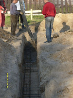 Dziś krócej nieco, bo już pora późna, a i na budowie ilościowo jakoś za wiele się nie działo. Ot, chłopaki kręcili od rana zbrojenia i układali je nad wykopem.