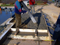 gdyż zamówiliśmy już betonik na ten dzień. Początkowo miał być na 16-tą, ale podobnie, jak w przypadku ław, przygotowania pod chudziaka odbyły się szybciej, niż zakładaliśmy wstępnie, więc krótki telefon do betoniarni, że my już i że jak mają okienko, to mogą wieźć. Tym sposobem, krótko po godz. 14-tej przybyli ułani: