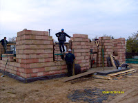 i już po chwili pustak stał na właściwym sobie miejscu Na tym "ciężka" praca się zakończyła Przynajmniej na razie - w domku jeszcze nie jeden kilogram stracę przy jego wykańczaniu, bo to tamten etap chcemy zrobić maksymalnie sami. Murarkę zostawiam fachowcom :) Nota bene szef ekipy pytał, po co robię tyle zdjęć, co szybko zostało rozpracowane przez członków ekipy, że "na pewno do internetu" Kazali też podać namiary na ten dziennik, więc muszę uważać co piszę :> Jeszcze mi roboty odmówią i będzie klops, bo chłopaki dobrze robią i ciężko było by znaleźć inną taką ekipę :>