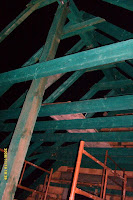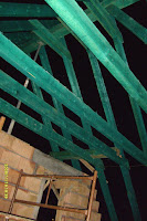 Ułożone krokwie, jętki i inne elementy konstrukcji dachu: