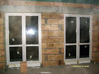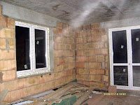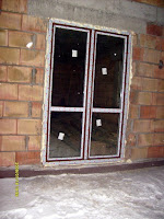Drzwi zewnętrzne jeszcze tymczasowe, bo nie chcemy, żeby nam inne ekipy łażące ze sprzętem i materiałami po budynku nie zniszczyły drzwi. Muszę się przy okazji pochwalić, że futryna do tych drzwi to moje dzieło Niestety z braku czasu i kłopotów logistycznych nie dałem rady zrobić wszystkiego - zrobiłem ramę zewnętrzną, obsadziłem drzwi i zacząłem montować wewnętrzną część futryny. Resztę (czyli poprzeczkę górną i montaż zamka musiała dokończyć ekipa. Drugie foto, to drzwi tarasowe :)