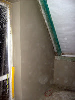 Jak widać (zwłaszcza na jednym ze zdjęć) chłopaki ostro pracują, więc tynków przybywa dość szybko, nawet pomimo przeciwności losu, jakimi są ciągłe kłopoty z prądem: np. wczoraj wyłączyli prąd w całej okolicy, a chłopaki akurat mieli załadowany agregat i materiał w rurze Fakt, że wyłączenie było planowane i wszyscy o tym wiedzieli, ale planowane było dużo wcześniej - chłopaki specjalnie przyjechali później na budowę, żeby nie było zbędnego przestoju. Zadzwoniłem do ZE, gdzie dyspozytor z rozbrajającą szczerością poinformował, że "pojechali ciężkim sprzętem w pole i sprzęt się zakopał, bo roztopy i deszcze...". Ehhh....