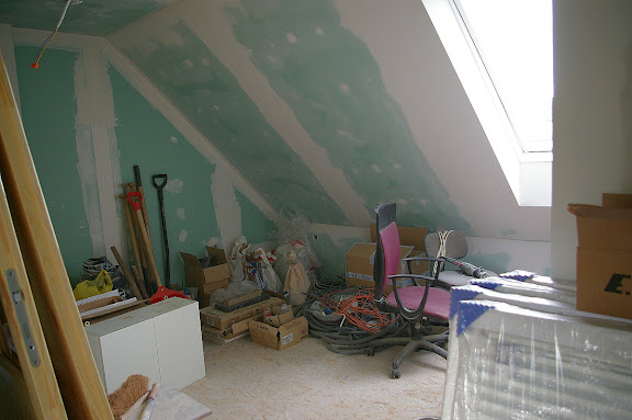 I dalej już całe poddasze. W naszej sypialni już jest pierwszy .... mebel....
