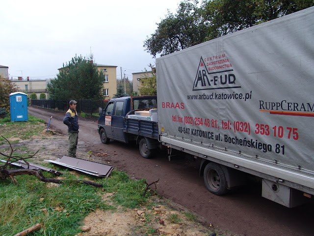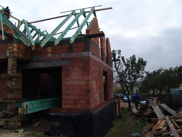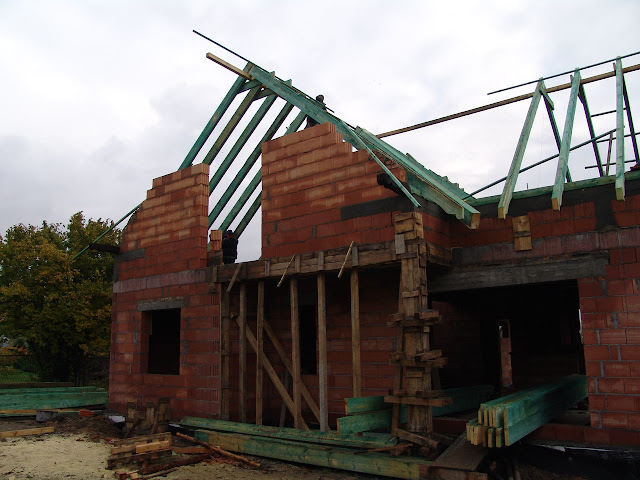 Prace nad dachem trwaja dzis znów moja facjata sie ucieszyła;) po pracy przytyrałem na budowe i patrze....o 2 największe bele wciągniete na góre:) jak on to zrobili:) Majster powiedział ze takiego dachu to on jeszcze nie robił:) po pogaduszcze następny smile:) przyjechały okna dachowe FAKRO:) i cała galanteria dachowa:) Kierowca bardzo sympatyczny pogaduszył co gdzie wozi i jakie chacjedy budowane sie w poblizu:) pojechałem dzis do OBI wymienic nasz drewnochron bo sprzedano nam hebanowy a miał byc ...nawet sam juz nie wiem... jutro ciag dalszy oby była pogoda:) no mam nadzieje ze bedzie:) zamawiamy jutro 3 palety PH 25 i klinkier na kominy:) fotki z dnia dzisiejszego:) ponizej!