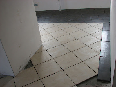 Dziś był dalszy ciąg układania płytek w salonie - wykusz: