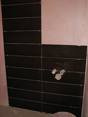 Dziś Hubert instaluje brodzik, więc jutro położą podłogę. Drugą ścianę brodzika i bok między umywalką a drzwiami zrobią później - jak już będzie dokładnie wiadomo jakie będą wymiary.
