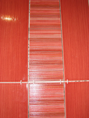 ściana prysznicowo - sedesowa - w rzeczywistości płytki są mniej pomarańczowe, zdecydowanie czerwone