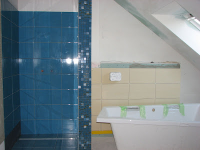 Teraz stoi tam wanna, ale jej miejce jest na przeciwległej ścianie - po prawej stronie od wejścia - już powstaje jej obudowa, dziś został podłączony syfon i bateria (ale zdjęć z tak zaawansowanych prac jeszcze nie mam)