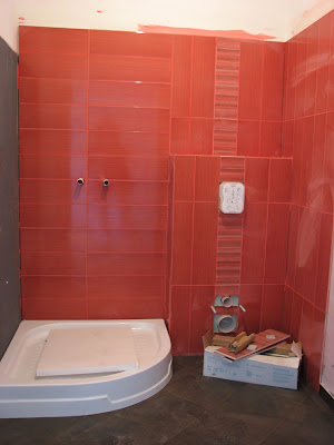 Dolna łazienka zafugowana - czekam na kabinę, zeby skończyć układać plytki. Miała przyjechać dzisiaj, ale nie dotarła .