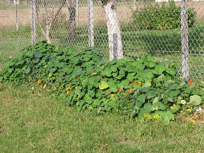 Mam też dzikie wino - widać jedno na zdjęciu z wrzosami... dostałam parę sadzonek od koleżanki, więc obrastają ogrodzenie - z tyłu. No i piękne nasturcje mam