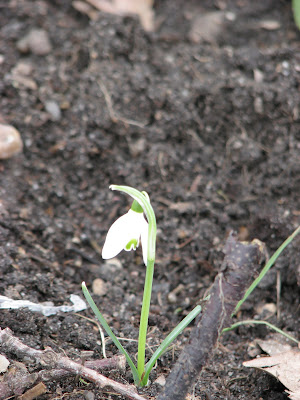 Pierwsza oznaka wiosny - przebiśnieg Wsadziłam 15 cebulek, wyrosły DWIE Podobno intensywnie się rozmnażają, może przyszłej wiosny będzie więcej...