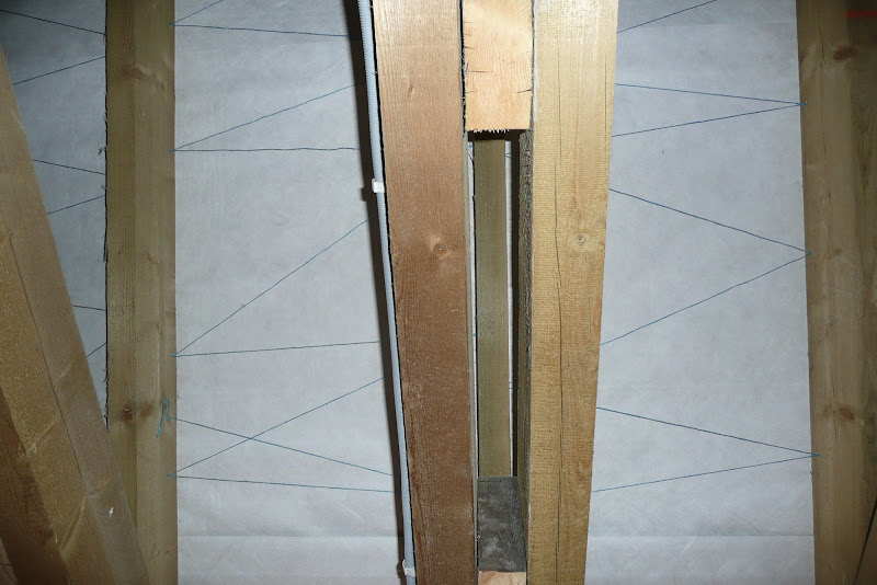 W ostatnim dniu kwietnia udało się rozpocząć etap ocieplania poddasza - pierwsze sznurki pod wełnę