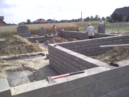 Nasi dzielni budowlańcy w niesamowitym upale zrobili ogromne postępy:) Oczywiście nie mogłam się powstrzymać i odwiedziłam ich na budowie, udało mi się nawet podnieść jeden bloczek betonowy i podać Leszkowi - murarzowi. Zostałam przy tym upomniana za zupełnie nieodpowiednie obuwie na placu budowy (różowe sandałki ), ale udało mi się zrobić parę zdjęć do naszego dziennika:)