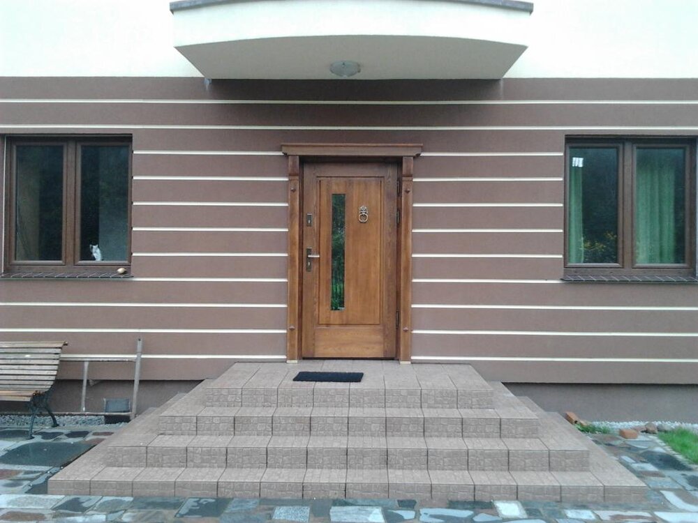 Witam, proszę o pomoc w zdiagnozowaniu przyczyny zawilgocenia ścia ny przy drzwiach wejściowych. Załączam zdjęcia jak to wszystko wygląda obecnie i jak wyglądało na etapie budowy. Zwracam uwagę na następujące rzeczy: -schody przyklejone bezpośrednio do muru -ciemniejszy kolor dolnego rzędu pustaków -zadaszenie(balkon) nad schodami -wilgoć pojawiła się od samego początku na tynku Mam 2 pytania: -czy przyczyną jest złe wykonanie izolacji? -czy na pewno przyczyną nie może być np. uszkodzona rura pex z podłogówki, i czy można to sprawdzić dolewając może jakiegoś barwnika do instalacji?-to ważne dla mnie pytanie, bo o ile wilgoć z zewnątrz bym przeżył, to ewentualny wyciek ciągle tłucze mi się po głowie -jak teraz temu zaradzić? Pozdrawiam
