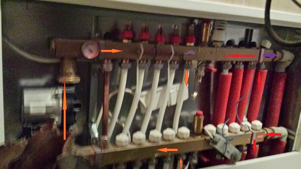 Witam Proszę o pomoc w rozszyfrowaniu mojego ogrzewania podłogowego.Chcieliśmy mieć kilka grzejników w pokojach i łazience oraz ogrzewanie podłogowe w reszcie pomieszczeń. W założeniach woda o większej temperaturze miała iść na grzejniki , a na podłogówkę miała być mieszana. Czy to wykonanie jest zrobione zgodnie ze sztuką ? Nie jestem fachowcem , ale wg. mnie woda na podłogówkę jest mieszana z wodą na wyjściu z grzejników, a tak chyba nie powinno być ? Czy to, że przykręce grzejniki bedzie wpływało na temp. podłogówki ? Z góry dziękuję za pomoc.