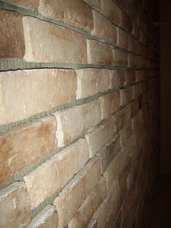 -nie ma potrzeby tynkowac sciany przed nalozeniem cegly (szkoda pieniedzy) -na jednej scianie polozylismy klej grzebieniem i potem nakladalismy plytki elkamino, a na drugiej scianie nakladalismy klej na plytke (smarujesz jak kromke chleba maslem), po wyschnieciu, jak przyszlo do nakladania fugi to sie okazalo, ze na tej scianie gdzie byl klej, ciezko sie nakladalo fuge, bo miala inny odcien, rowki z kleju i ciezko sie tam szpachelką wkladalo tę fugę. Fuge radze zrobic na pol-sypko bo jak pobrudzisz plytki to bedzie wygladalo nieciekawie. Gdybym miala to robic jeszcze raz, smarowalabym klejem kazda plytke osobno, odstepy ok.1cm, jak bedą mniejsze, to ciezko wkladac potem fuge, najlepiej przygotowac sobie takie deseczki 1cm i robic nimi odstepy, bo krzyzyki nie są odpowiednie. My mamy tak: o tych rowkach mowie, pomiedzy ceglami: po nalozeniu fugi sciana wyglada tak: i w wc, gdzie nie nakladalismy na sciane kleju: i po nalozeniu fugi: nie impregnowalam cegly, nic sie mi nie sypie -kladlismy na zwykly klej do glazury, fuge zamawialismy razem z ceglami z elkamino- 2 221 odpowiedzi