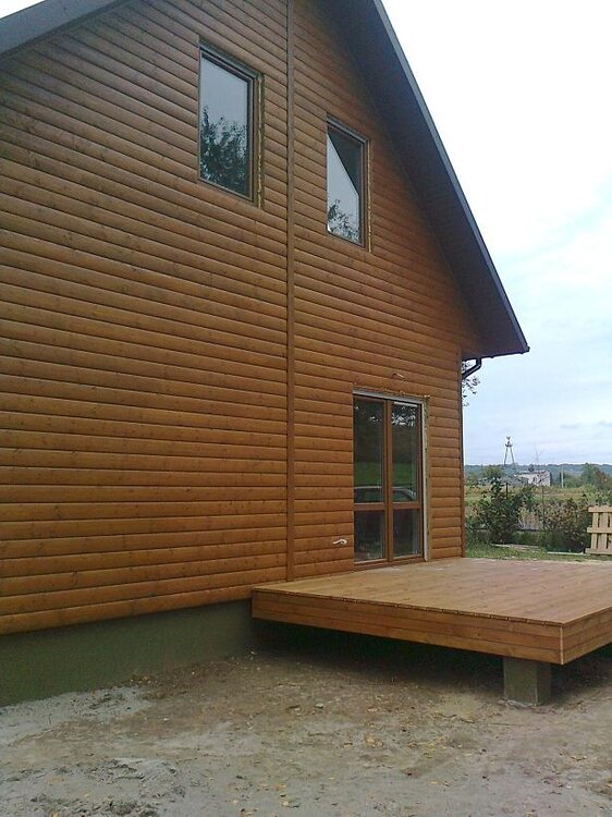 Na dzień dzisiejszy elewacja jest już skończona. Moje deseczki prezentują się znakomicie! Jeszcze lepiej niż myślałam. Kolor dębu na świerku skandynawskim jest według mnie ładniejszy niż na próbce sosnowej.:) W ciągu jednego dnia zyskałam instalacje co, wodną i kanalizacyjną, a w ciągu drugiego-elektryczną. No i miałam problem z właściwą decyzją co i gdzie mam mieć jeśli chodzi o elektrykę. Zapomniałam o kablu na zewnatrz do oświetlenia drogi z garażu do domu, a także o kablu do zasilania przepompowni ścieków. Elektryk pojechał, ale panowie z Kamarbud uspokoili mnie, że sobie poradzą i będę miała brakujace kabelki. Dlatego dobra rada: zaplanujcie sobie wcześniej całą elektrykę, gdzie mają być gniazdka, przełączniki i lampy.