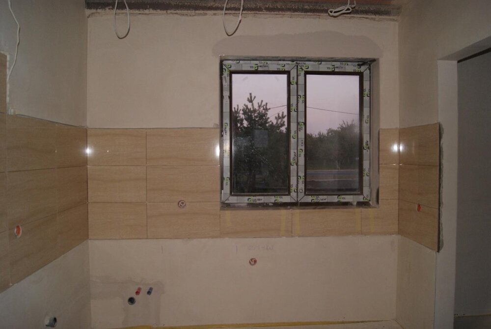 piątek, 30 wrzesień Dni lecą jak szalone a ja nie mam czasu na bieżąco uzupełniać dziennika. Nie wysypiam się, ciągle gdzieś jeżdżę, dzwonię, umawiam, załatwiam, kupuję, wybieram...uff masakra dużo tego. Wczoraj dojechała kostka na chodniki i schody Nostalit szara i grafit. Za około 1,5 tyg brukarz zaczyna pracę. Akcja elewacja narazie stoi w miejscu bo wykonawca wyjechał na delegację a drugi się rozchorował. Mamy 2 szczyty na gotowo, tył do pomalowania CERPLASTEM a z przodu tyle: Efekty pracy płytkarza: kuchnia salon-zabrakło 10 płytek bo to w końcu 2 gatunek i było trochę uszkodzonych w narożnikach. musimy poczekać 2 tyg na dostawę -