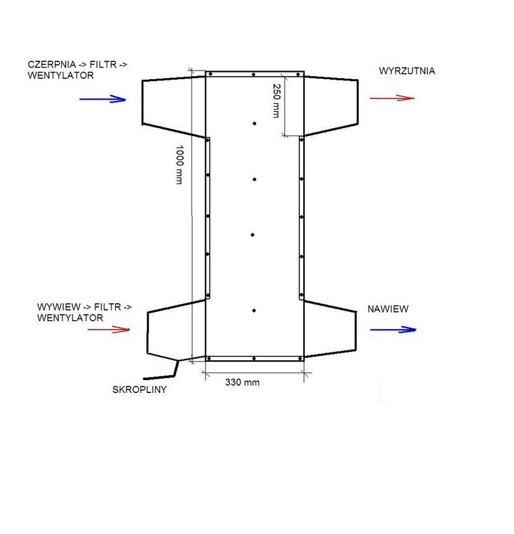 Planuję obecnie skrzynkę na wentylatory i mam dylemat, robić w jednej skrzynce, czy osobno. Wymiennik będę robić z aluminium wg sposobu Adama_mk. W1: Przy wentylatorach w jednej skrzynce kolejność będzie taka: wywiew --> filtr --> wentylator --> wymiennik --> wyrzutnia nawiew <-- wentylator <-- filtr <-- wymiennik <-- czerpnia. W2: strona wywiewu taka sama nawiew <-- wymiennik <-- wentylator <-- filtr <-- czerpnia Przy wariancie 1 wymiennik będzie się kurzyć, więc przydało by się dać choć filtr, więc i tak osobna skrzynka. Przy wariancie 2 istnieje możliwość zamarznięcia filtra i wentylatora (choć niby temperaturę pracy podają od -25*C). GWC nie będzie, rozważam nagrzewnicę wodną na nawiewie z rury PEX nawiniętej na rurę, lub z nagrzewnicy lub chłodnicy samochodowej. Jednak wszystkie zawory termostatyczne, jakie widziałam pracują w zakresach temperatur powyżej 0*C. Chyba, że źle szukałam...